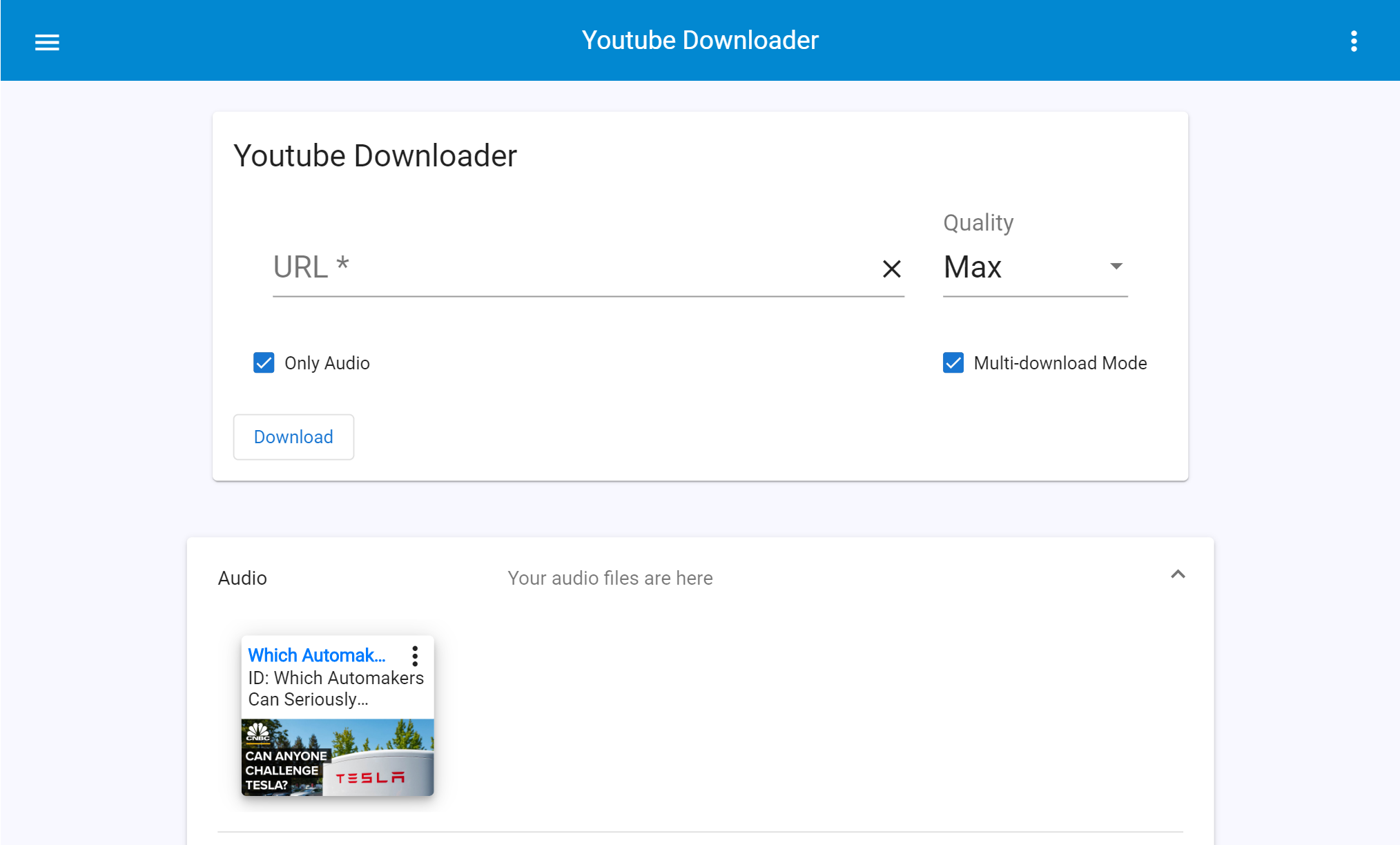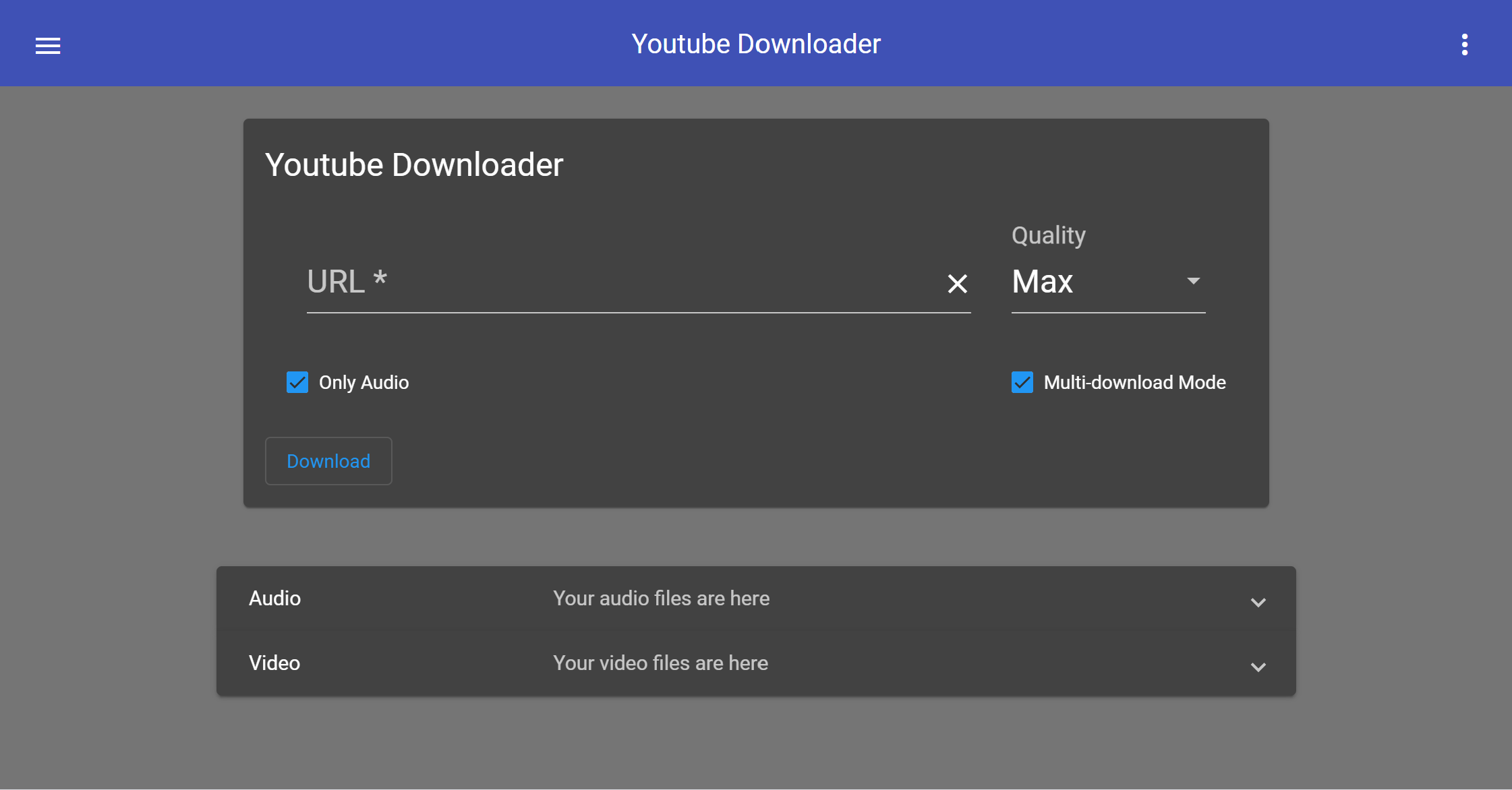 YoutubeDL-Material is a Material Design frontend for youtube-dl. It's coded using Angular 9 for the frontend, and Node.js on the backend.