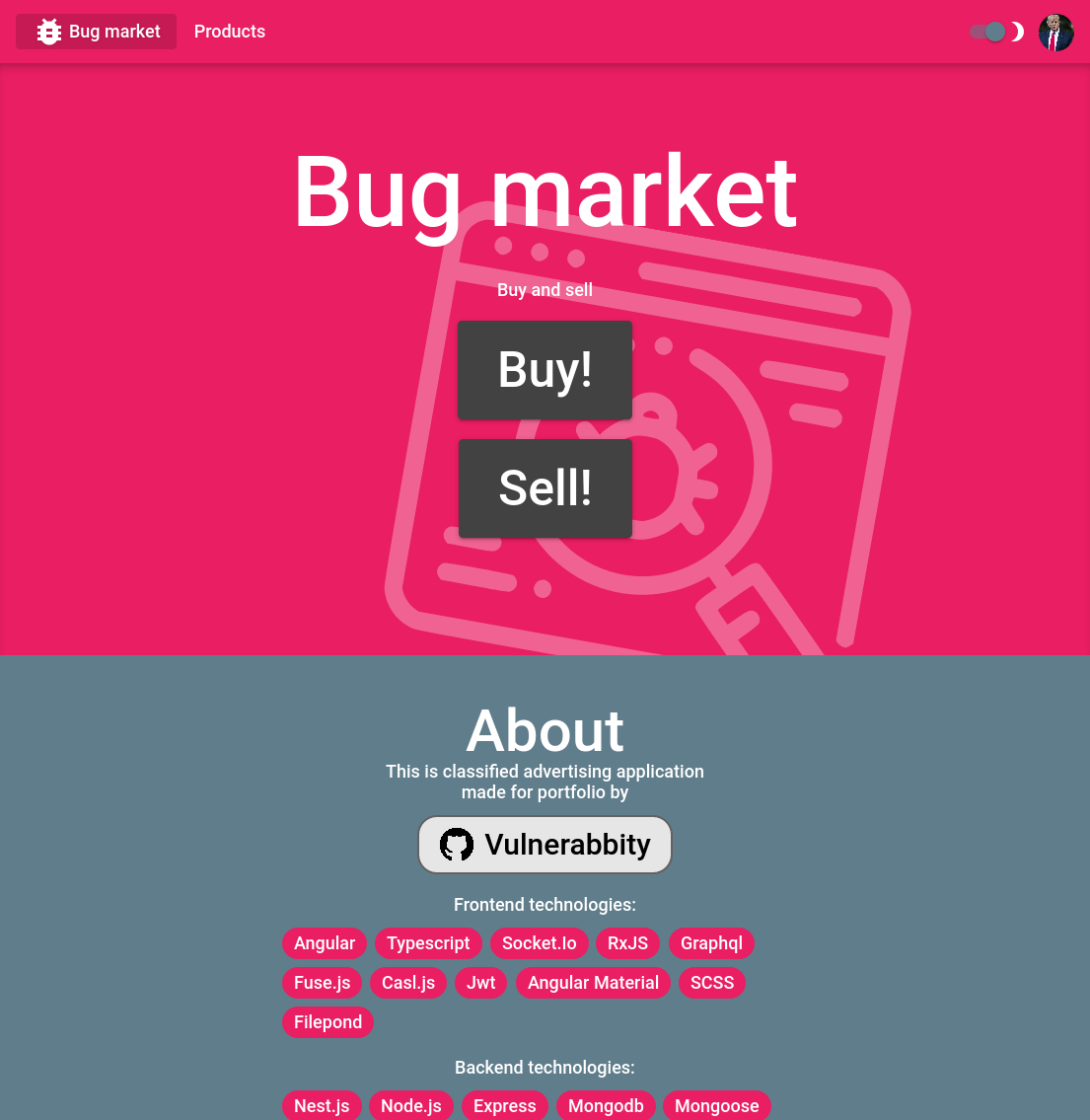 - JWT, Graphql, Websockets (Socket.io)