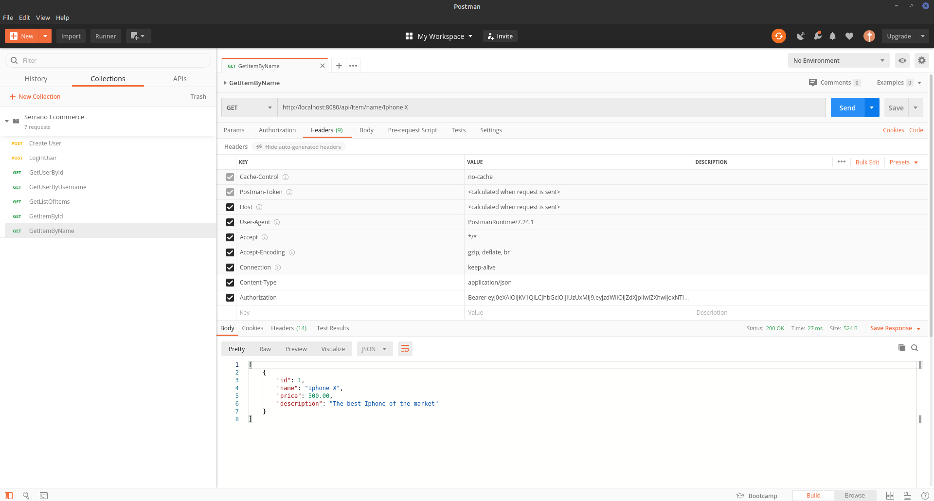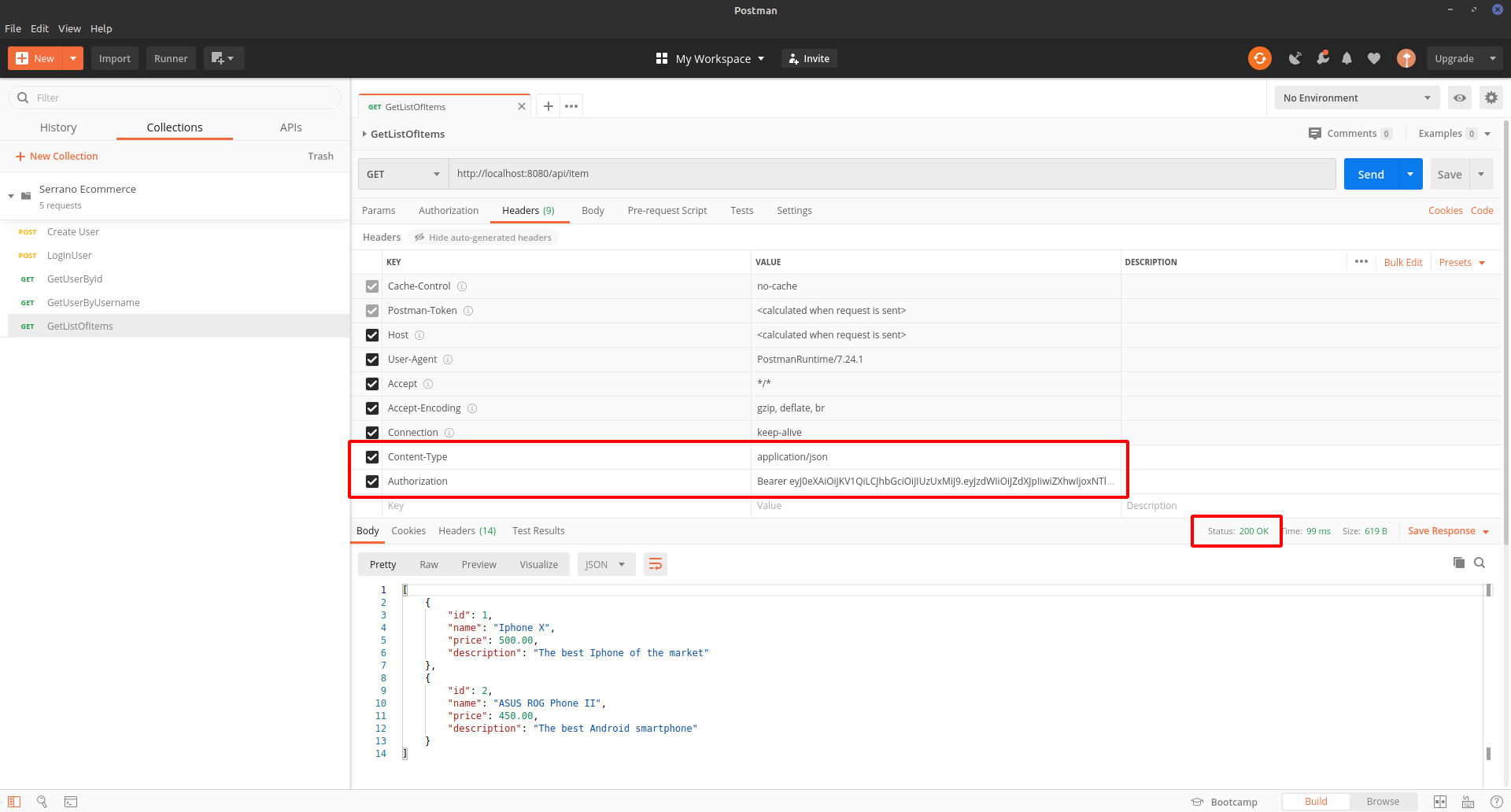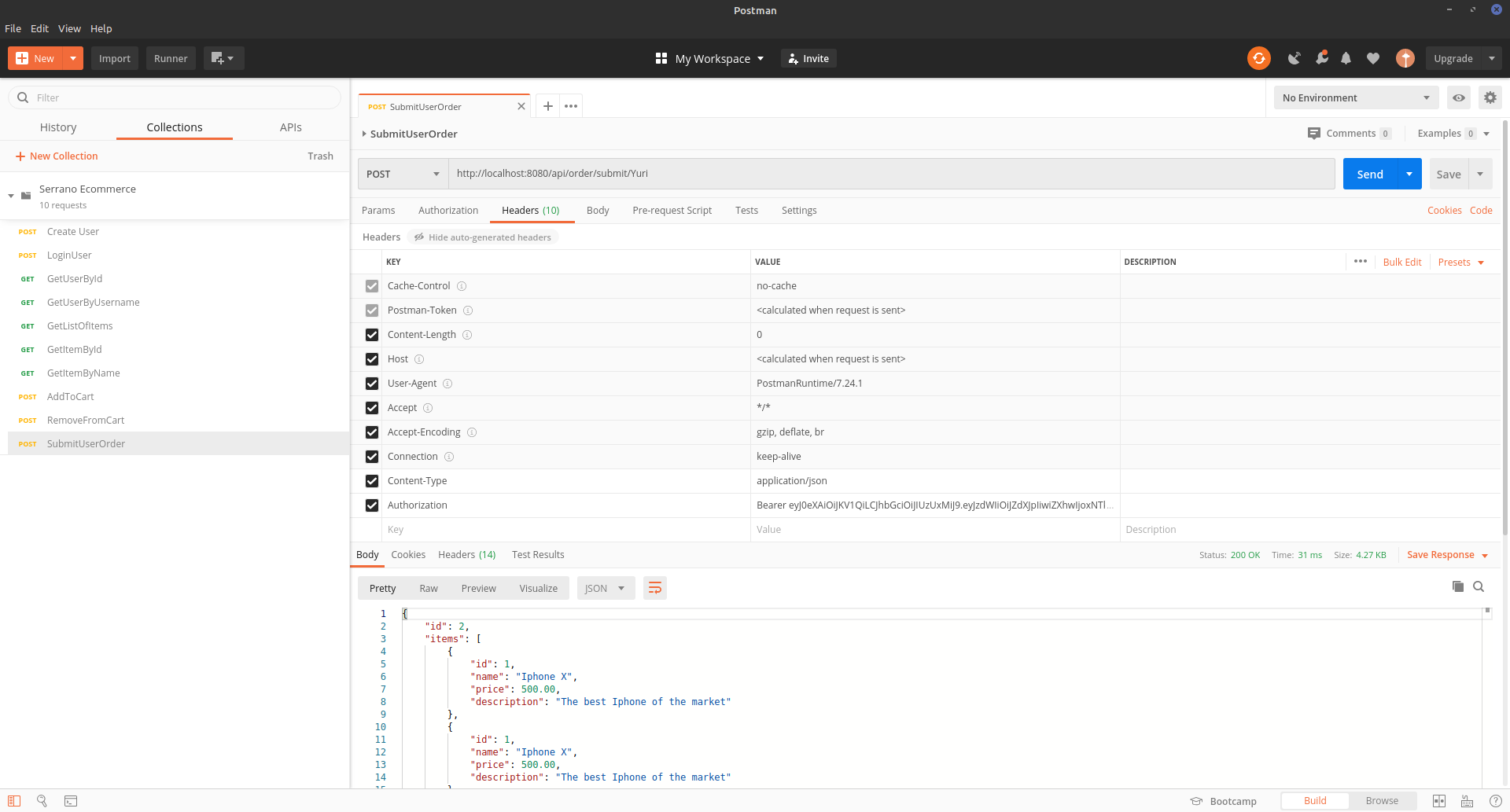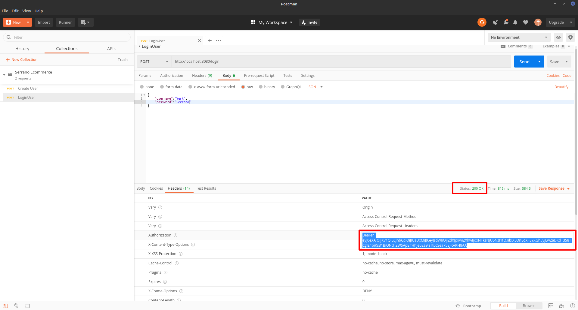 The Serrano Ecommerce is an application that aims to work on concepts such as DevOps, security, and analysis of logs, this is done through the implementation of a REST API, which simulates the process of purchasing of a user in an Ecommerce, in this case, the user performs the process of authentication and authorization, after that he/she can add items to your cart and eventually finish the purchase.