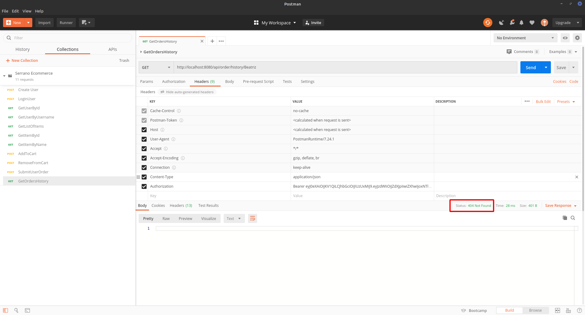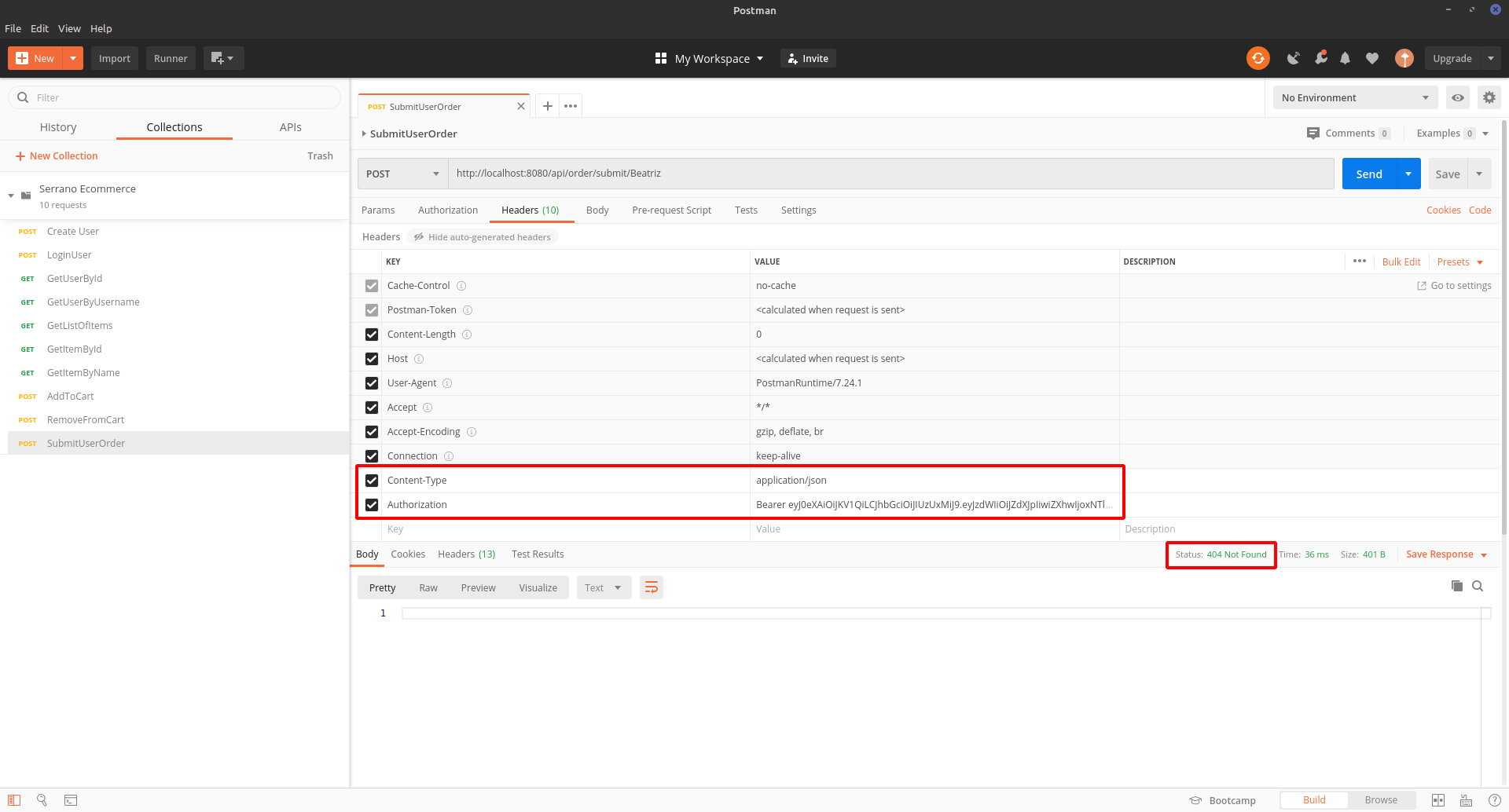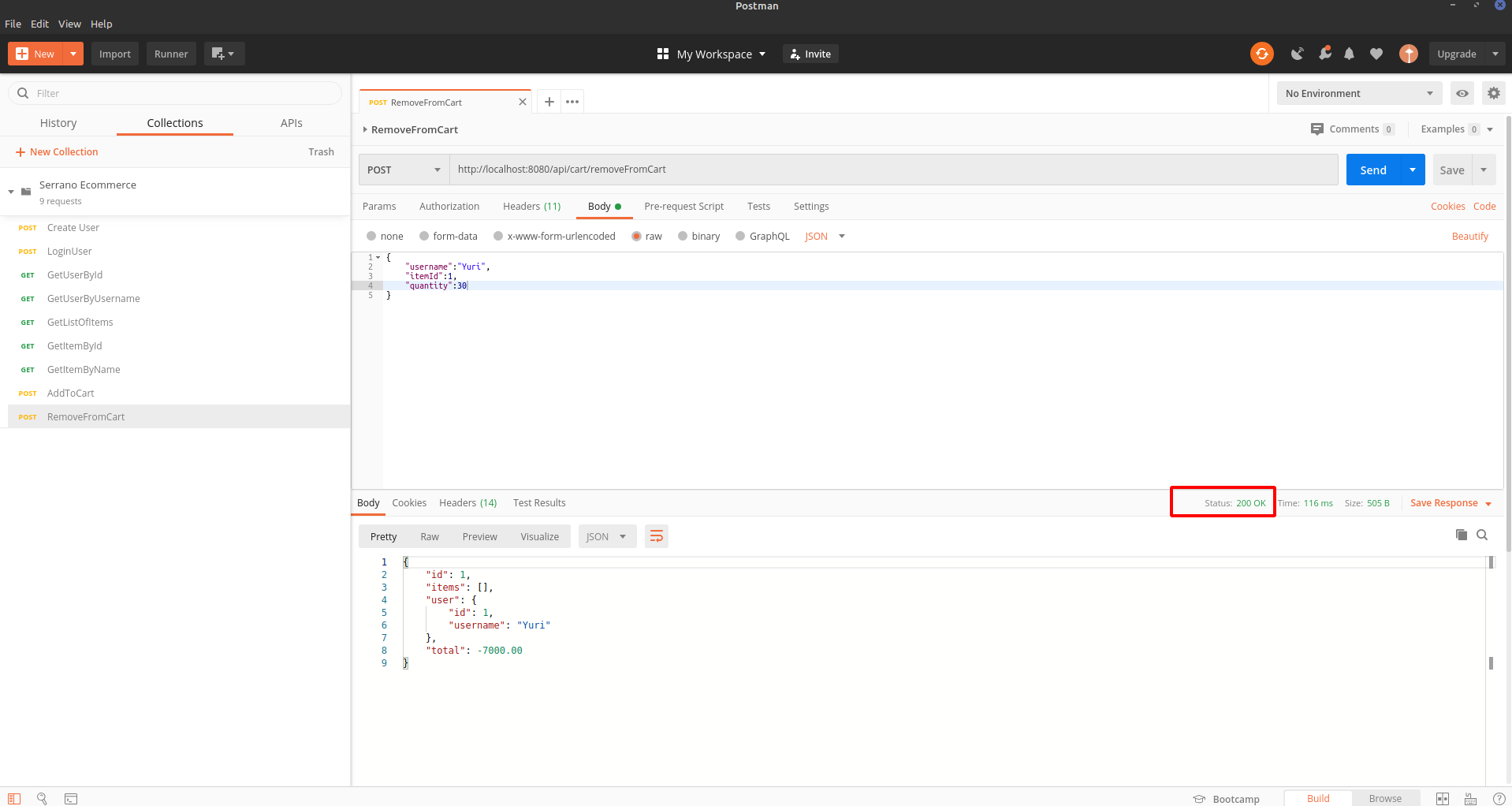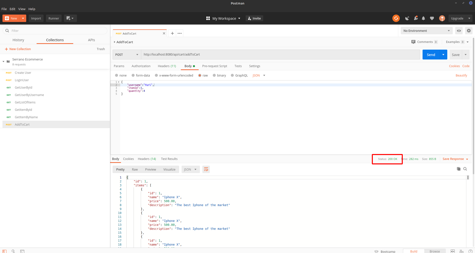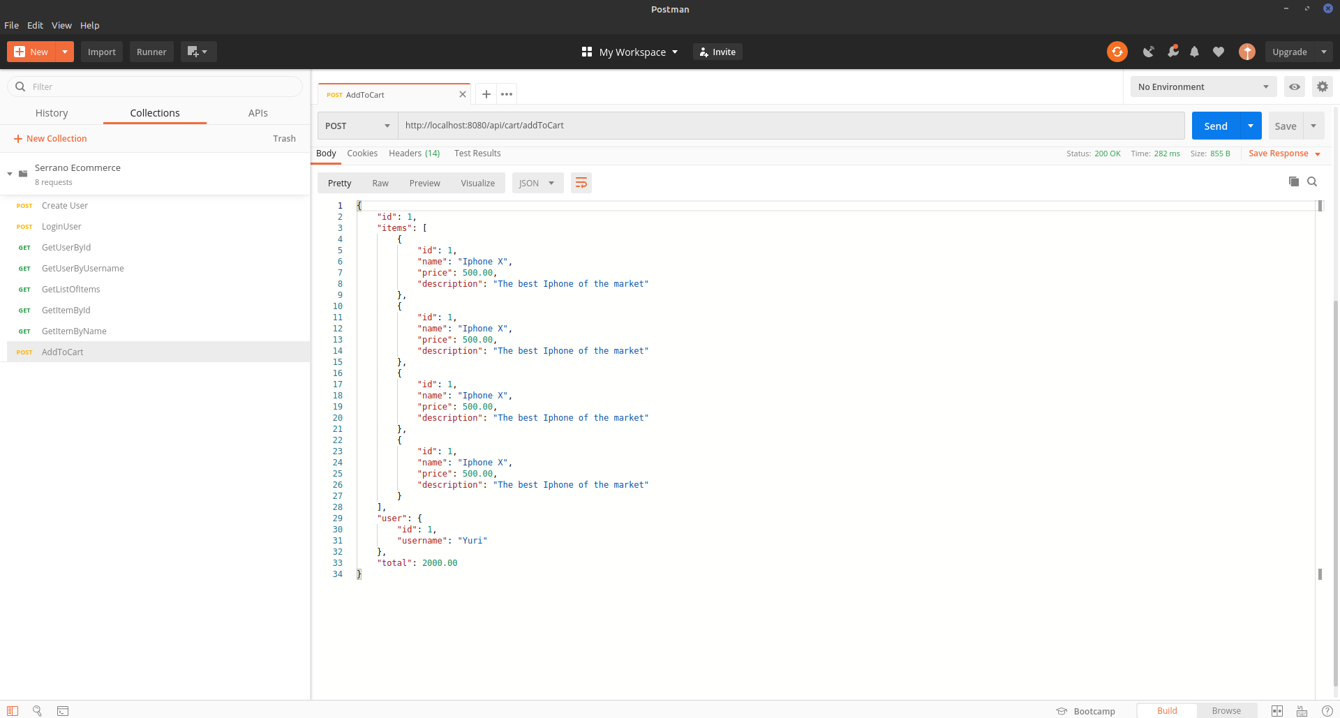 The Serrano Ecommerce is an application that aims to work on concepts such as DevOps, security, and analysis of logs, this is done through the implementation of a REST API, which simulates the process of purchasing of a user in an Ecommerce, in this case, the user performs the process of authentication and authorization, after that he/she can add items to your cart and eventually finish the purchase.
