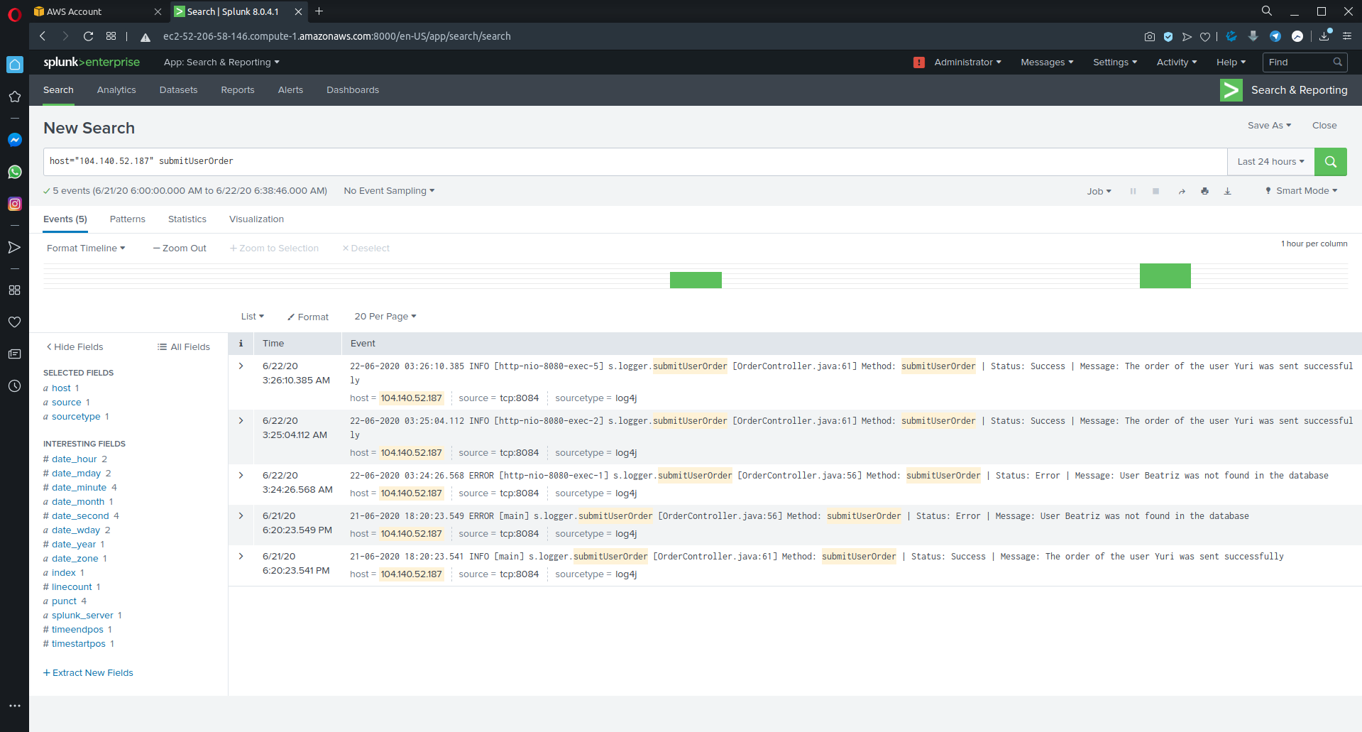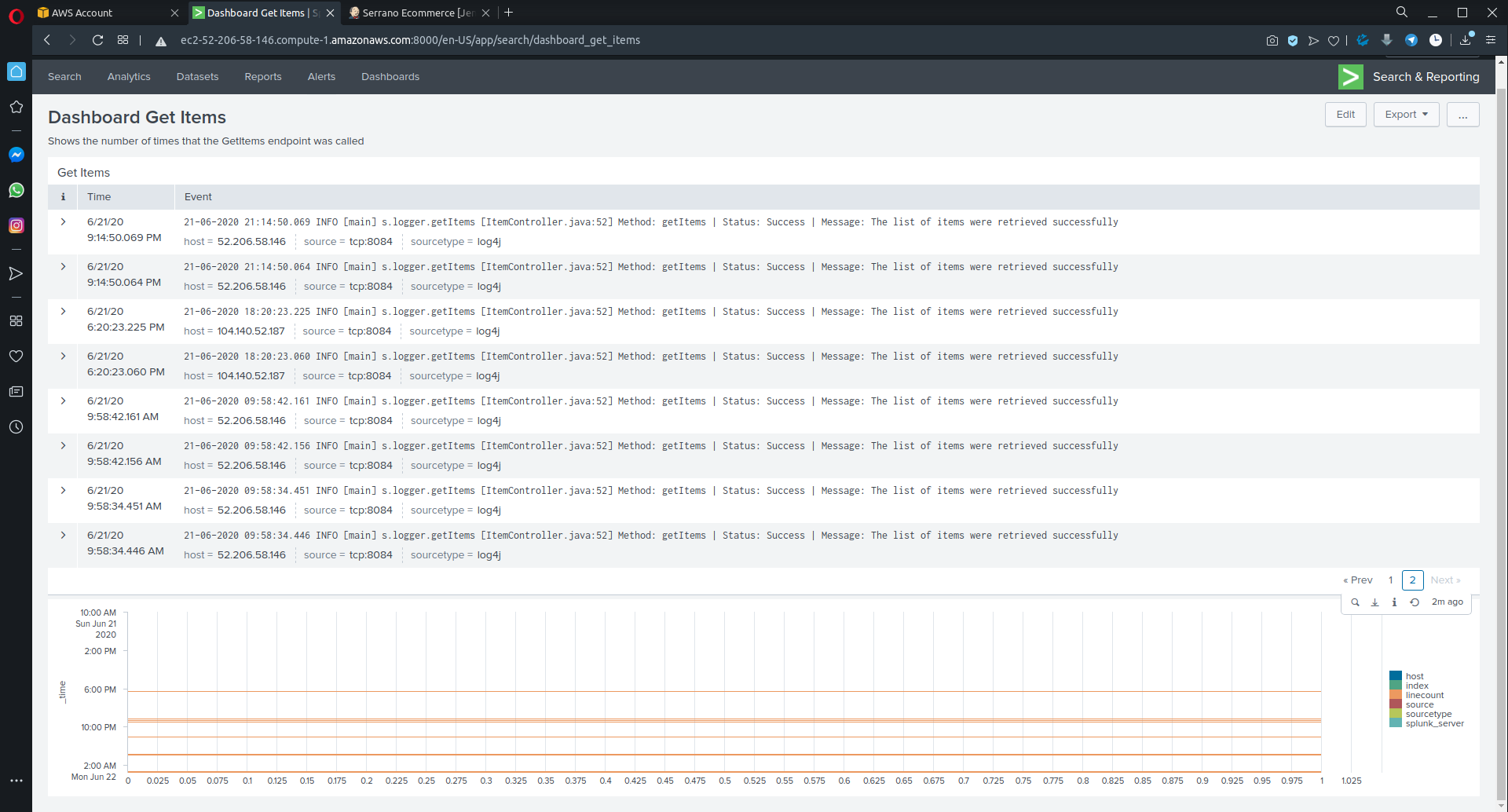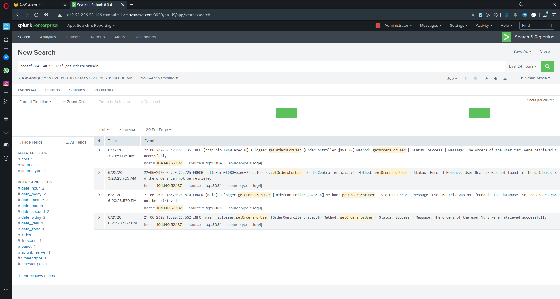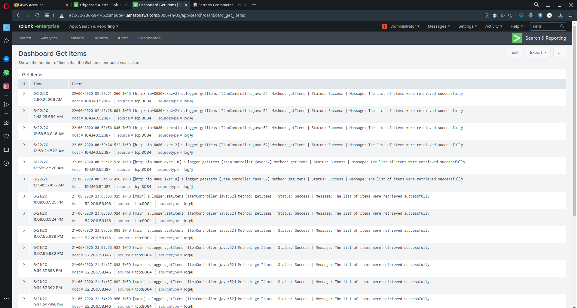 For logging and analysis of logs I used the Splunk, because it is very practical and effective for this type of task.