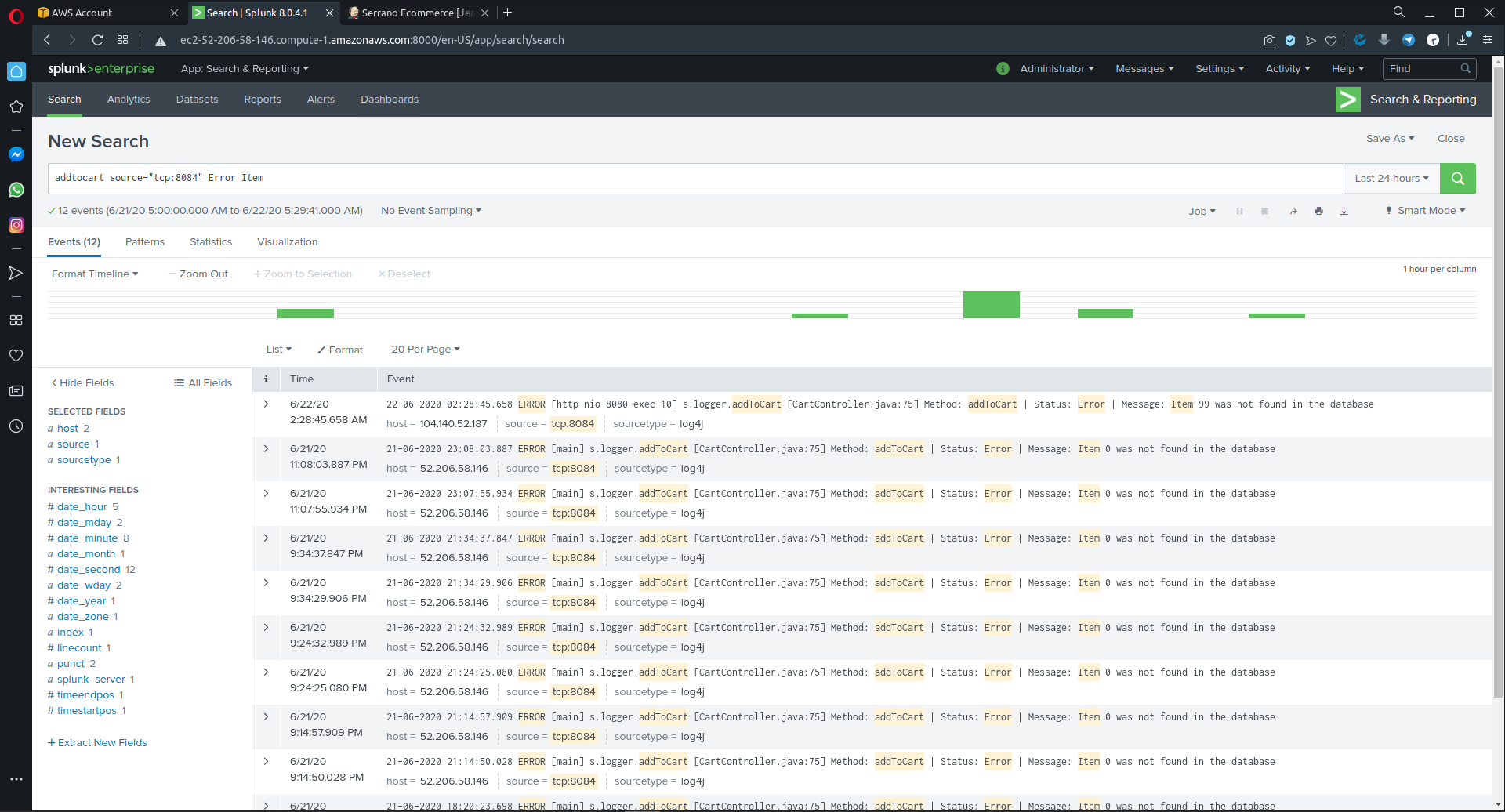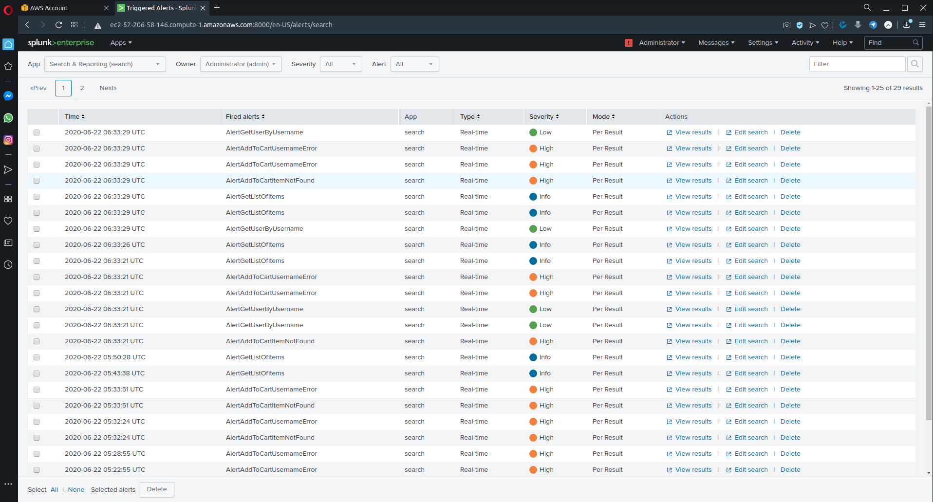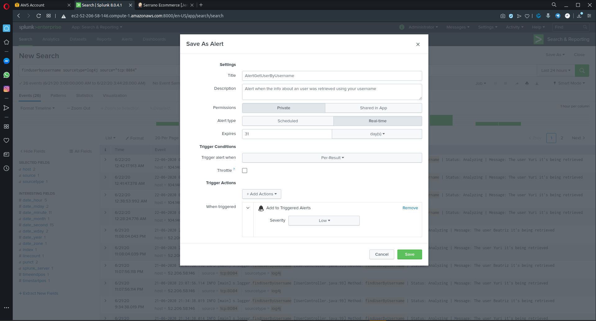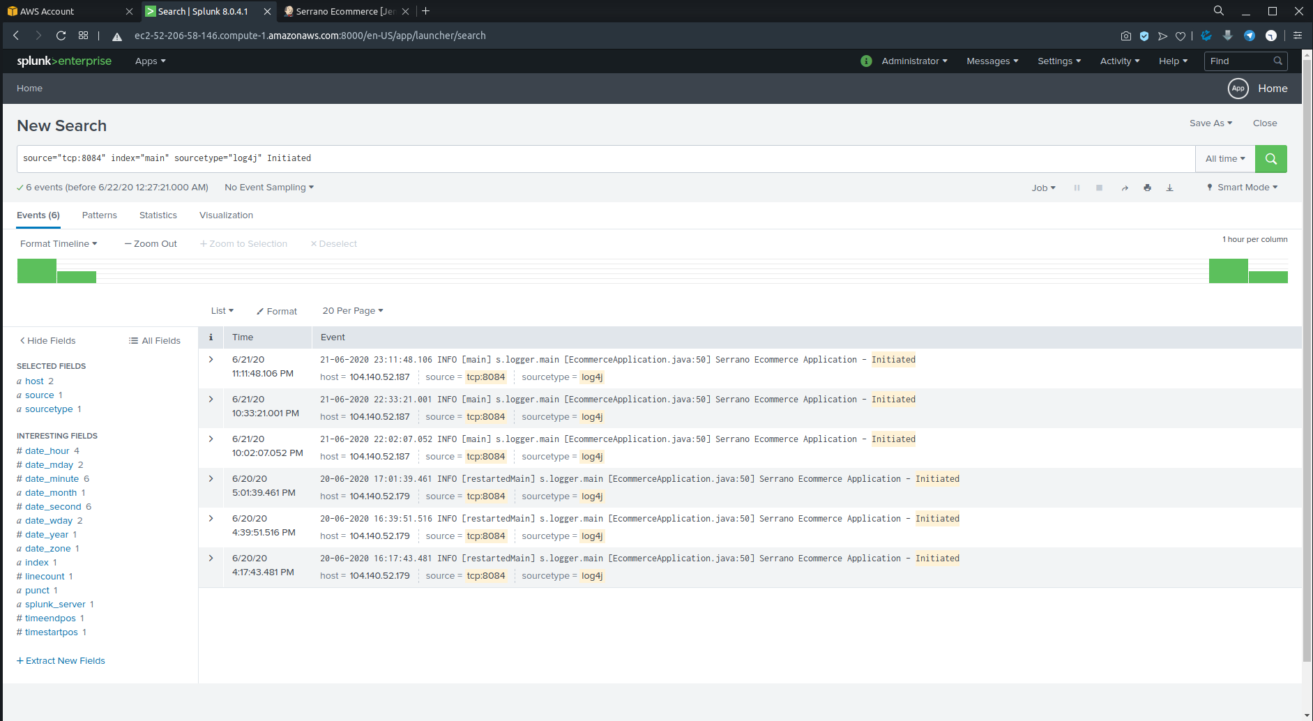 For logging and analysis of logs I used the Splunk, because it is very practical and effective for this type of task.