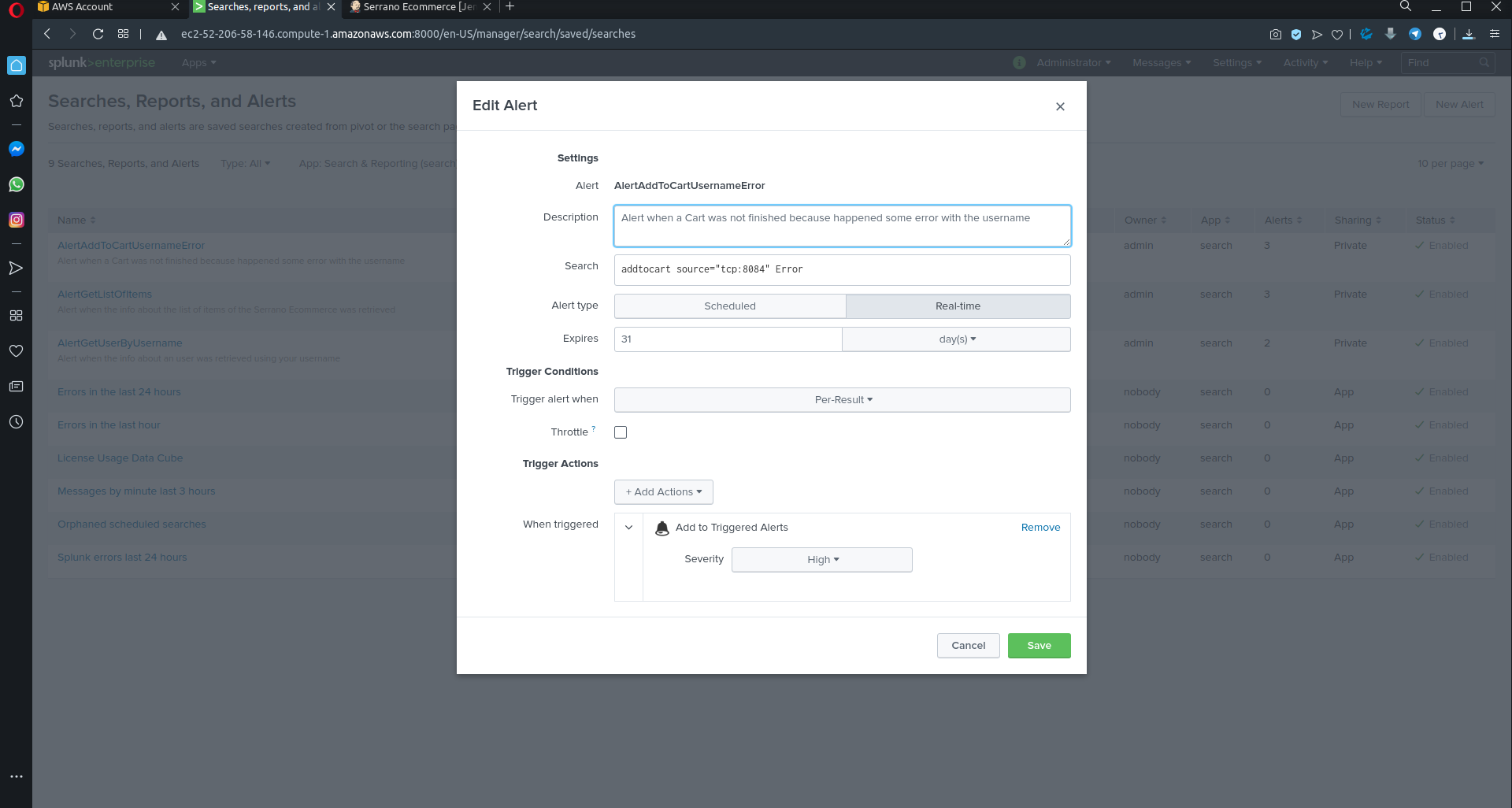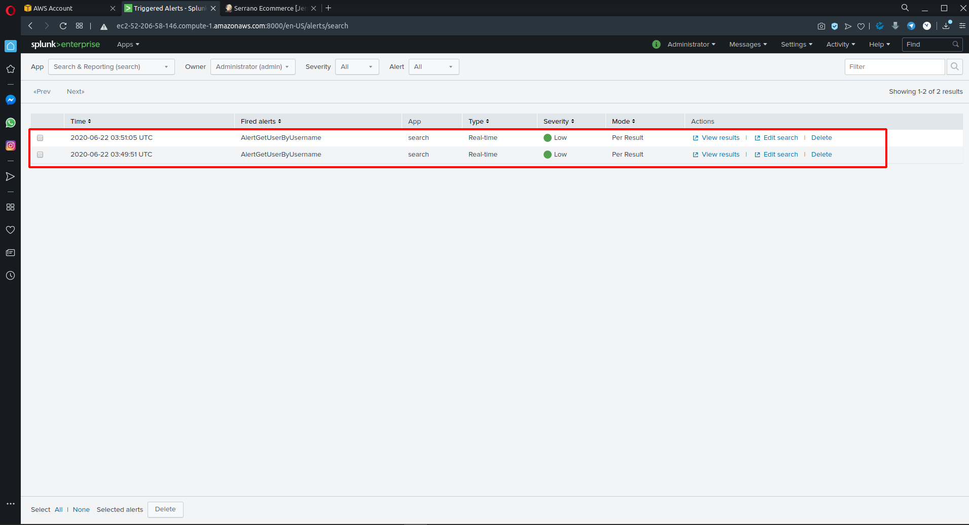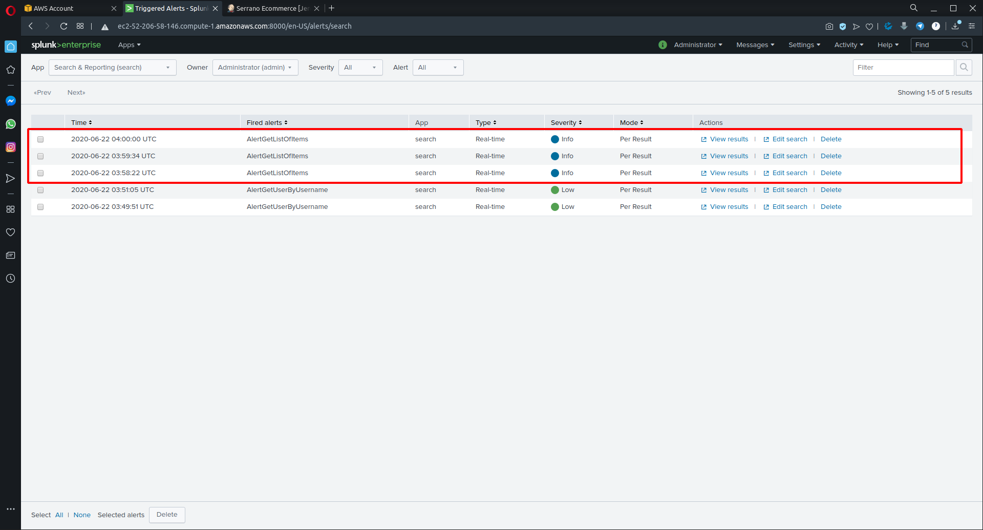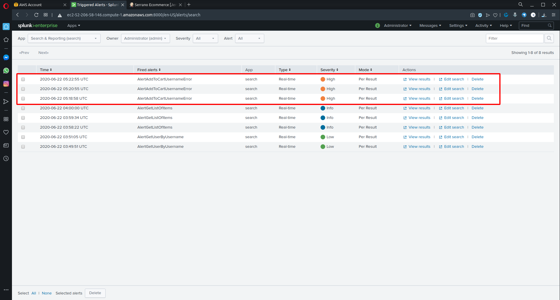 For logging and analysis of logs I used the Splunk, because it is very practical and effective for this type of task.