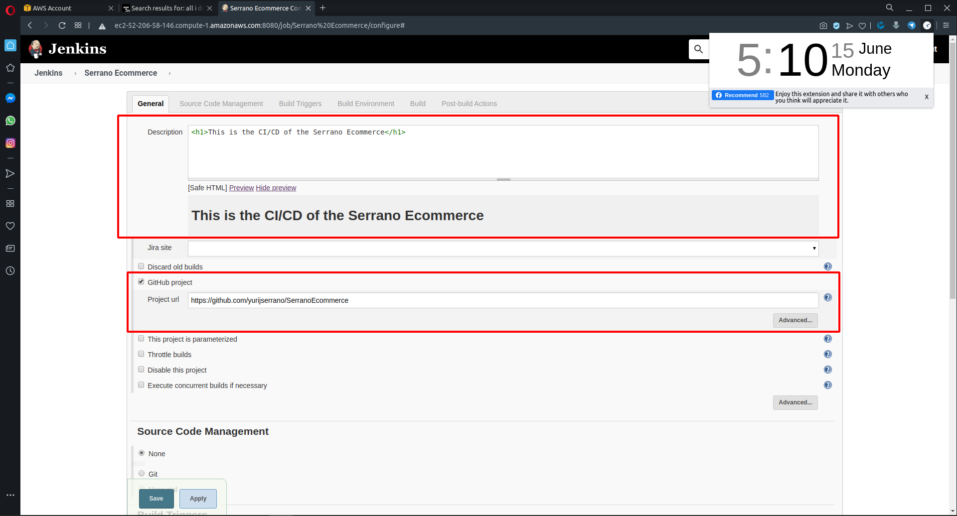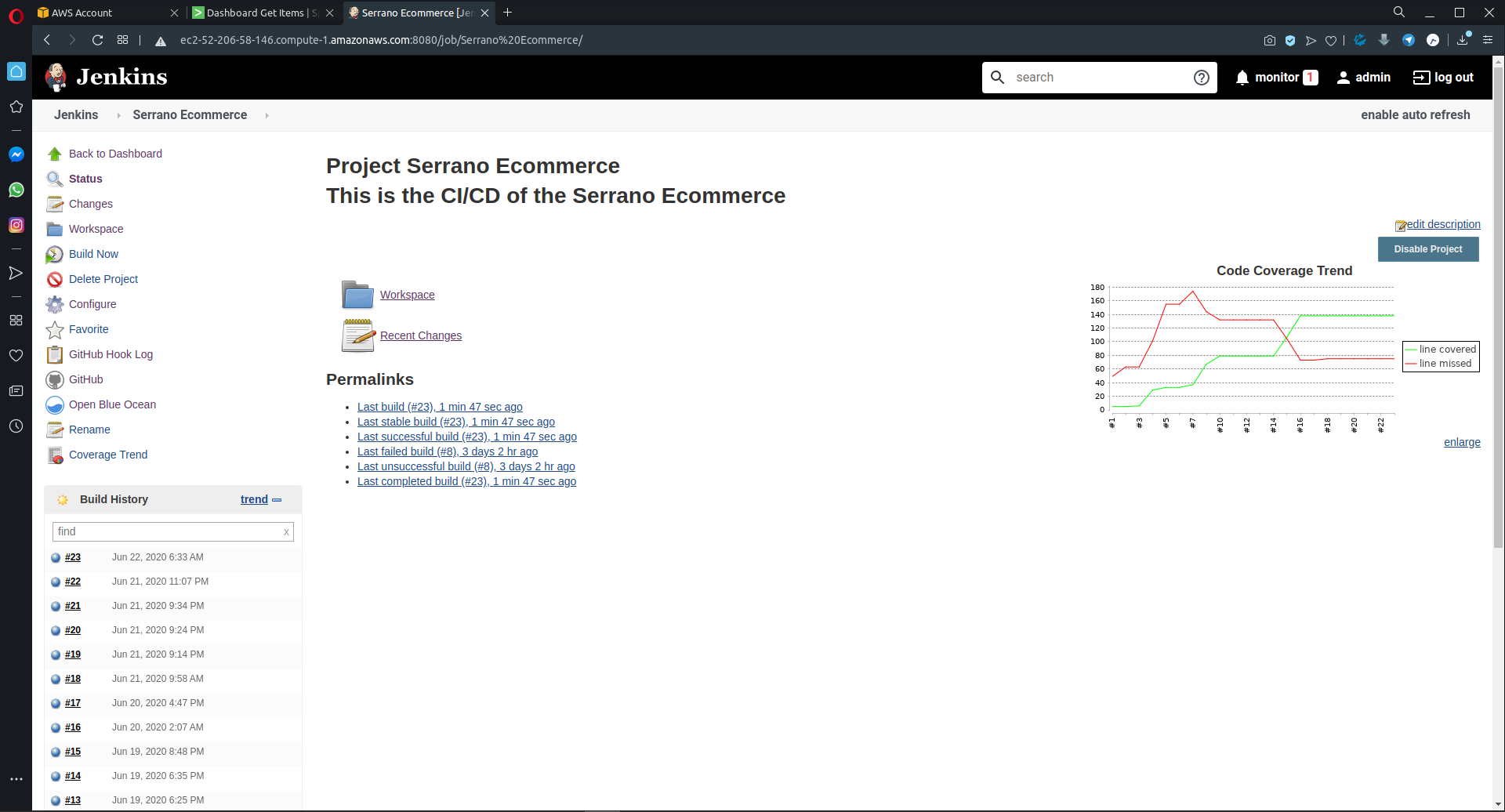 Regarding DevOps, the whole process of CI/CD was done by Jenkins which is available in an EC2 instance of AWS , having been installed through the Docker for better performance and savings of the virtual machine resources.