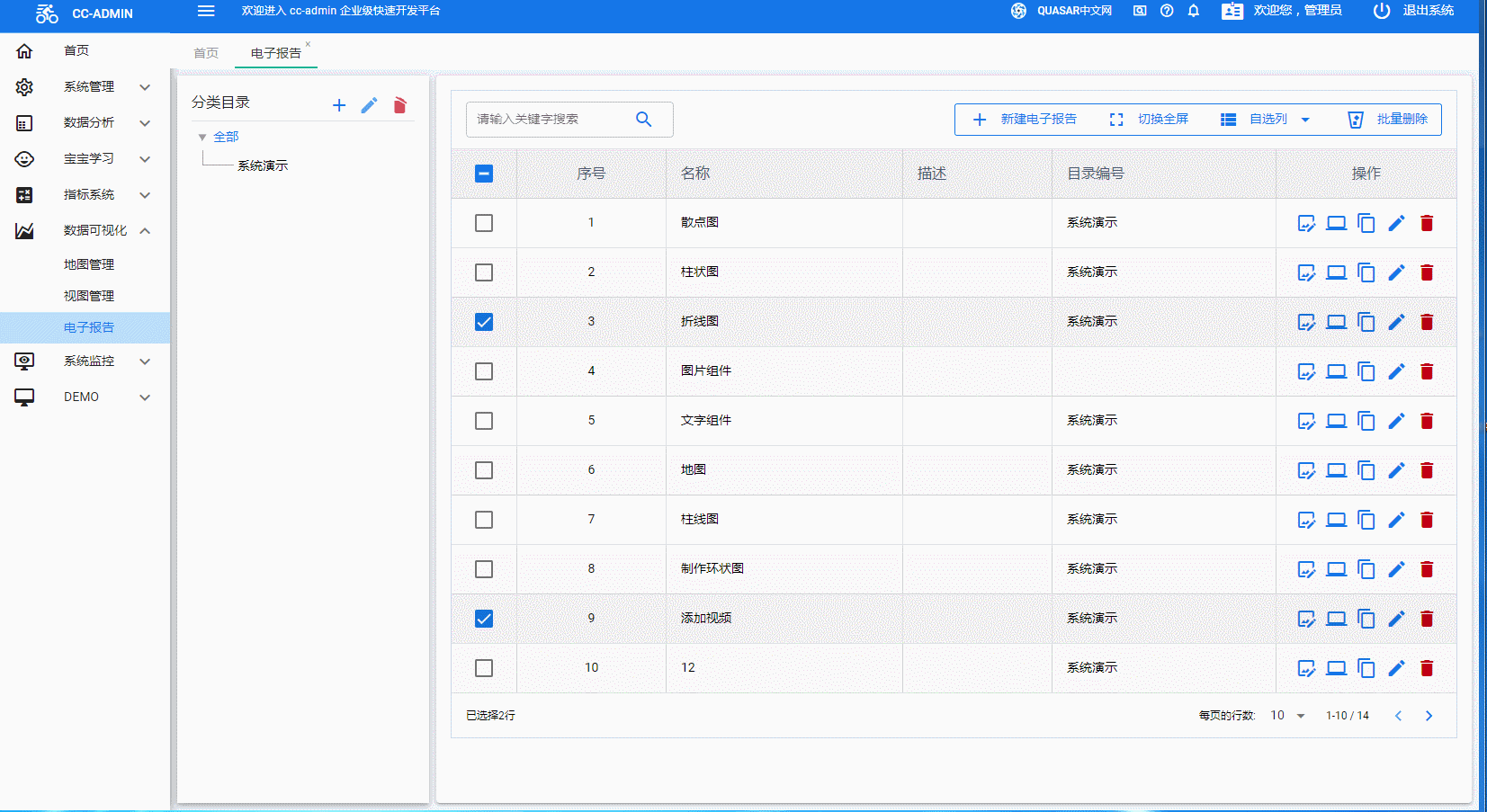 cc-admin前端源码,项目基于Quasar、Echarts、axios、vuedraggable等,实现了比较炫酷的BI,和家谱等功能!